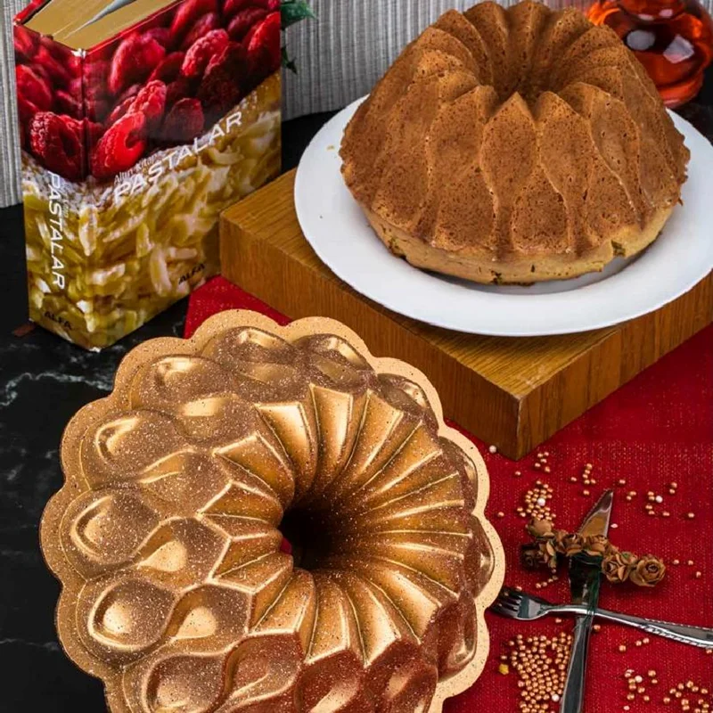 Taç Damla Granit Döküm Kek Kalıbı Gold
