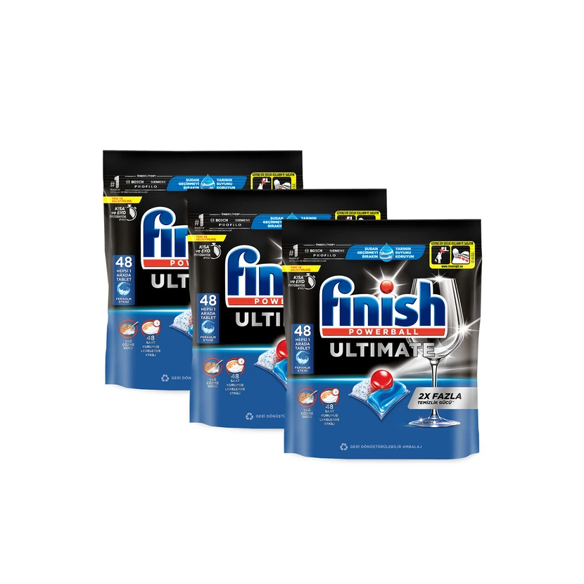 - قرص ظرفشویی فینیش آلتیمیت، بسته 144 عددی (48×3)، فرمولی قدرتمند برای پاککنندگی عمیق و براقیت ظروف حتی در شستوشوی کوتاه.