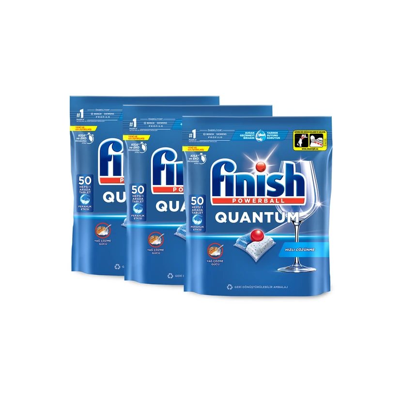- قرص ماشین ظرفشویی فینیش کوانتوم 150 عددی (۳ بسته ۵۰ تایی) پاککنندگی عمیق و حذف لکه و چربی را فراهم میکند؛ مناسب مصارف خانگی و صنعتی، صرفهجویی در هزینه و نگهداری آسان.