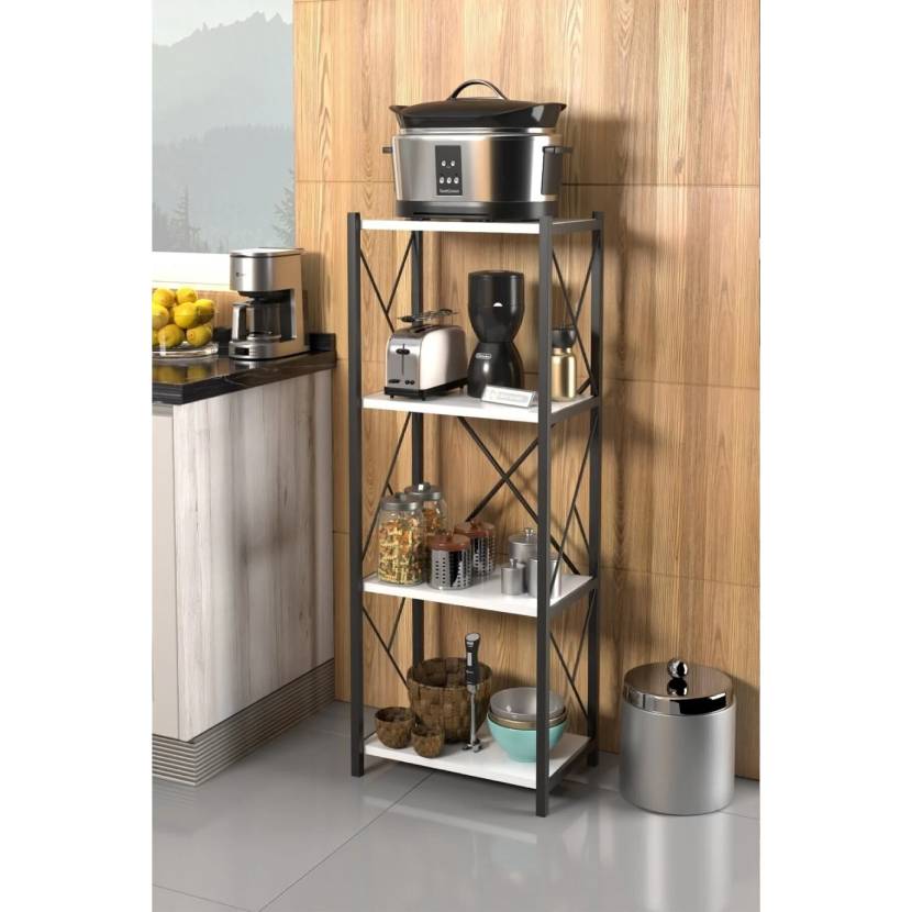 Morpanya Arnora Metal Tekli Mutfak Rafı Malzeme Dolabı 4 Raflı Mikrodalga Fırın Rafı Çok Amaçlı