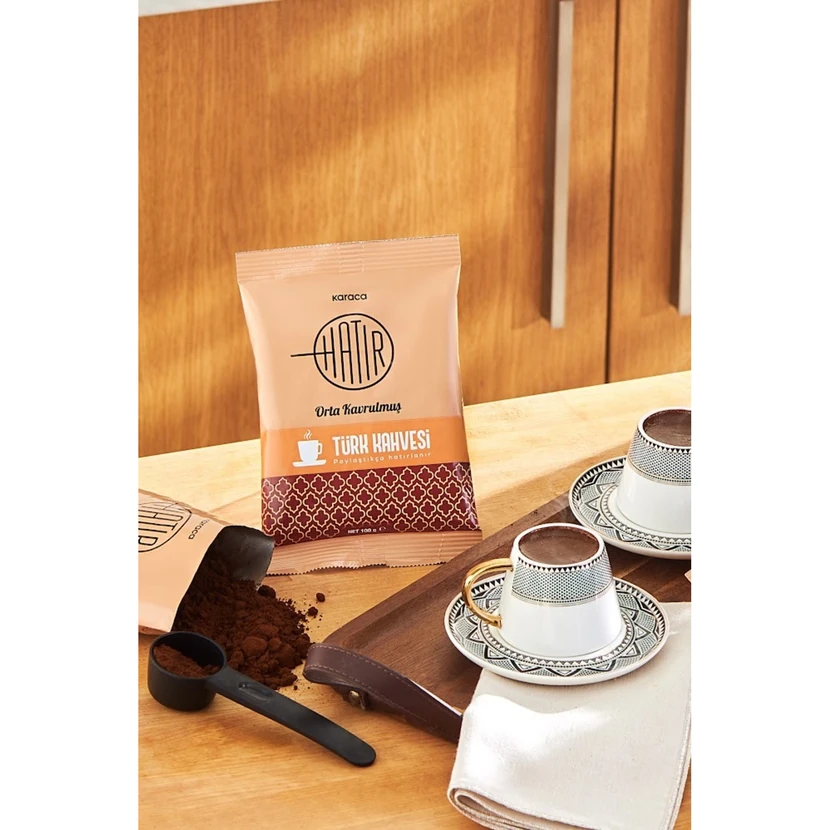 - قهوه ترک کاراجا در بسته 100 گرمی با رست متوسط و کف غنی؛ عطری دلپذیر و طعمی متعادل که برای سرو سنتی ترک و دوستداران قهوه اصیل ایدهآل است.