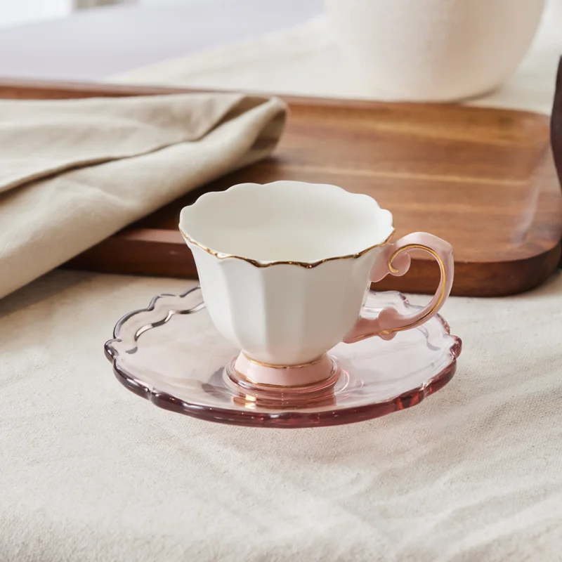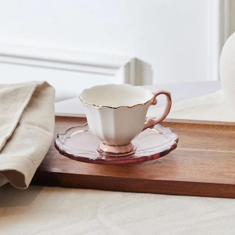 Karaca Samo 2 Kişilik Akrilik Tabaklı Pembe Kahve Fincan Takımı 90 ml