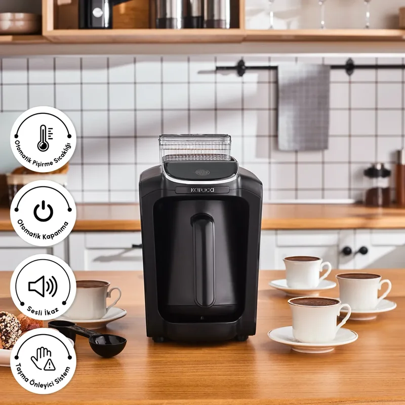 Hatır Su که می تواند 5 فنجان قهوه ترک یا قهوه ترکی بو داده را در یک زمان درست کند، قهوه را با دمای مناسب، قوام ایده آل و به موقع با تنظیم گرمای خودکار خود می پزد.