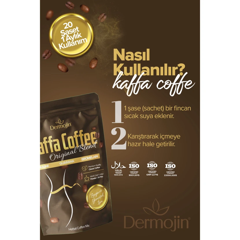 - قهوه کافّا درموجین ترکیبی از اینولین، برومیلاین و گوارانا است که انرژی و تمرکز را افزایش داده و با ترکیبات طبیعی، تجربهای با کیفیت از مصرف روزانه قهوه ارائه میدهد.