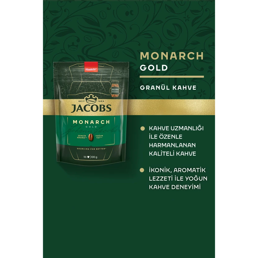 - قهوه گرانول جاکوبز مونارچ گلد در بستههای 100 گرمی و مجموعهٔ سهتایی؛ ترکیبی از عطر مطبوع و طعم متعادل که برای مصرف روزانه و پذیرایی مناسب است.