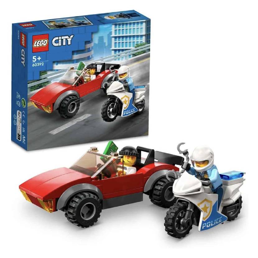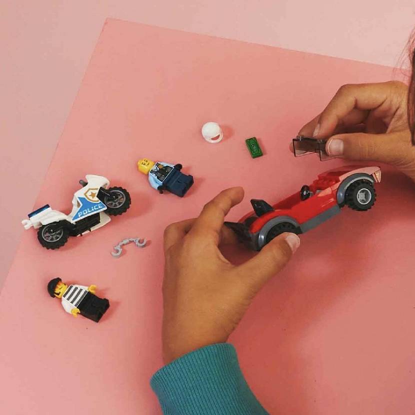 این اسباببازی پلیس لگو سیتی برای کودکان ۵ سال به بالا شامل یک اسباببازی موتورسیکلت پلیس، یک ماشین مسابقهای قرمز رنگ مخصوص فرار، مینیفیگورهای افسر و کلاهبردار است.بچهها میتوانند به افسر پلیس سوار بر موتورسیکلت اسباببازی کمک کنند تا سارق ماشین اسپرت را تعقیب کند، پول دزدیده شده را پس بگیرد و دزد را دستبند بزند.این مجموعه اسباببازی لگو پلیس با ماشین مسابقه همچنین شامل لوازم جانبی است: اسکناسهای اسباببازی و دستبندهایی که میتوانند به موتورسیکلت پلیس متصل شوند.شامل یک راهنمای ساخت دیجیتال تعاملی در برنامه رایگان LEGO Builder برای تلفنهای هوشمند و تبلتها است که در آن بچهها میتوانند مجموعه را از همه زوایا ببینند.مجموعه بازیهای لگو سیتی هدایای عالی برای تولد یا مناسبتهای خاص هستند، مناسب برای کودکان بالای ۵ سال که عاشق موتورسیکلت، ماشینهای مسابقهای و پلیس هستند.