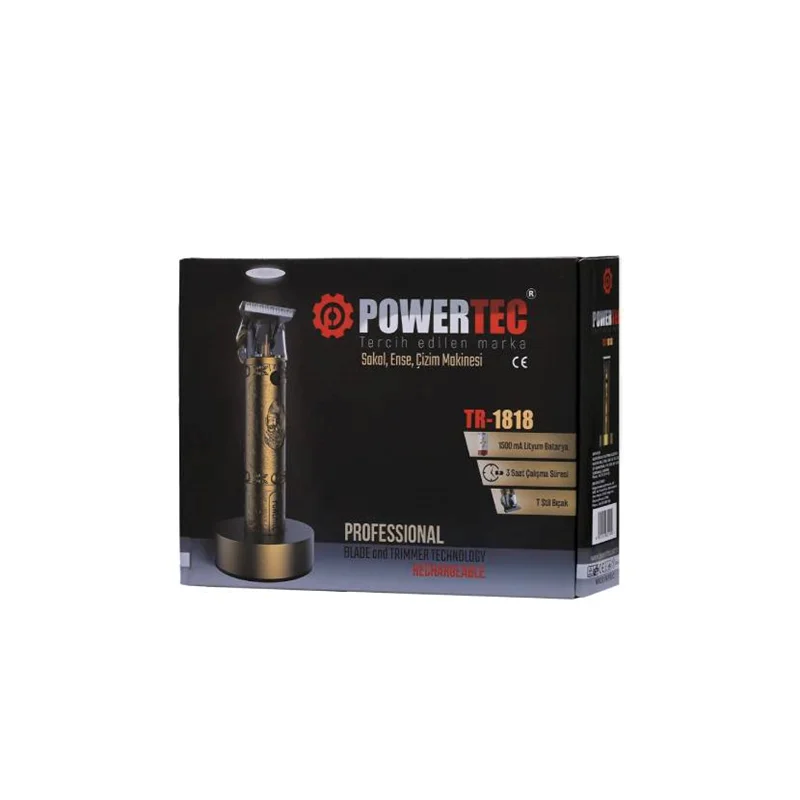 Powertec Tr-1818 Şarjlı Tıraş Makinesi Saç-Sakal-Ense-Vücut Lazer Epilasyon Öncesi (Standlı yeni versiyon)