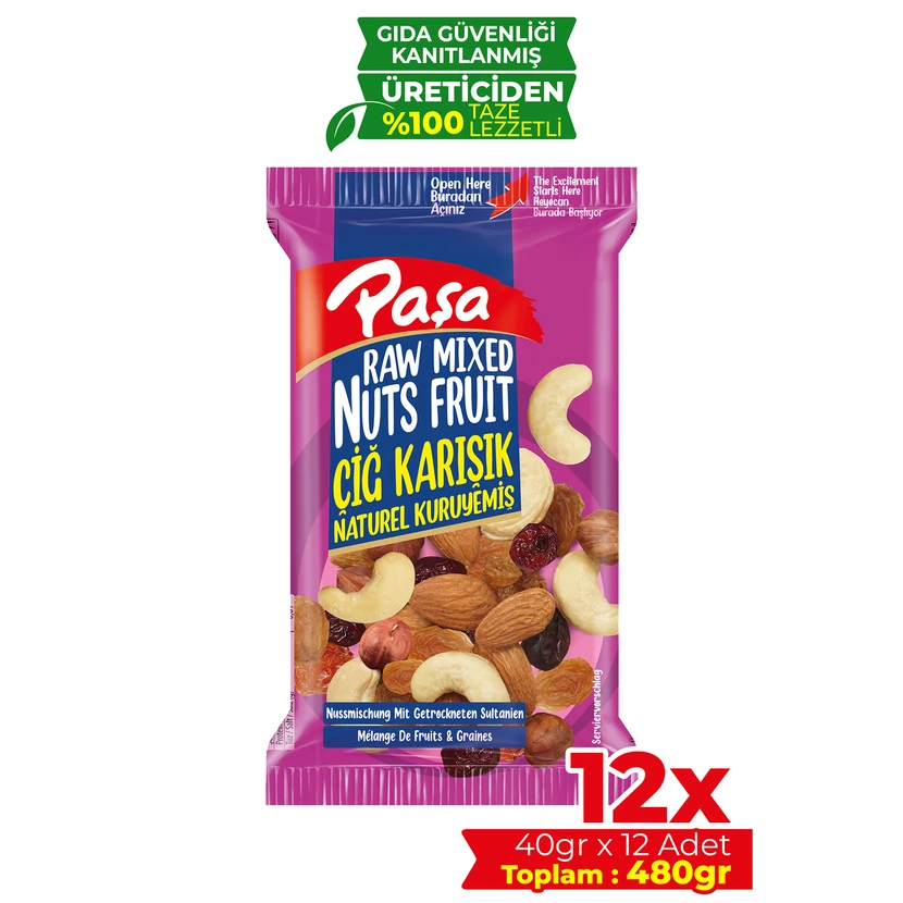 - مخلوط خشکبار خام پاشا، بسته 480 گرمی (۱۲×۴۰ گرم)، ترکیبی از مغزهای تازه و پرانرژی مناسب برای تنقلات روزمره، پیادهروی و محل کار.