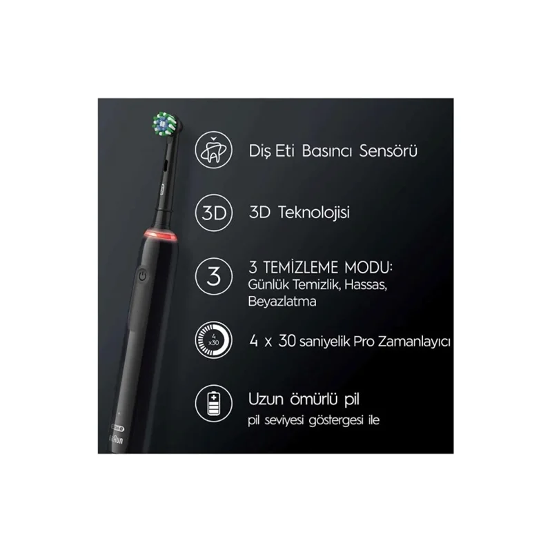 Oral-B Pro 3 - 3900 - Siyah Beyaz 2'li Şarj Edilebilir Diş Fırçası Seti