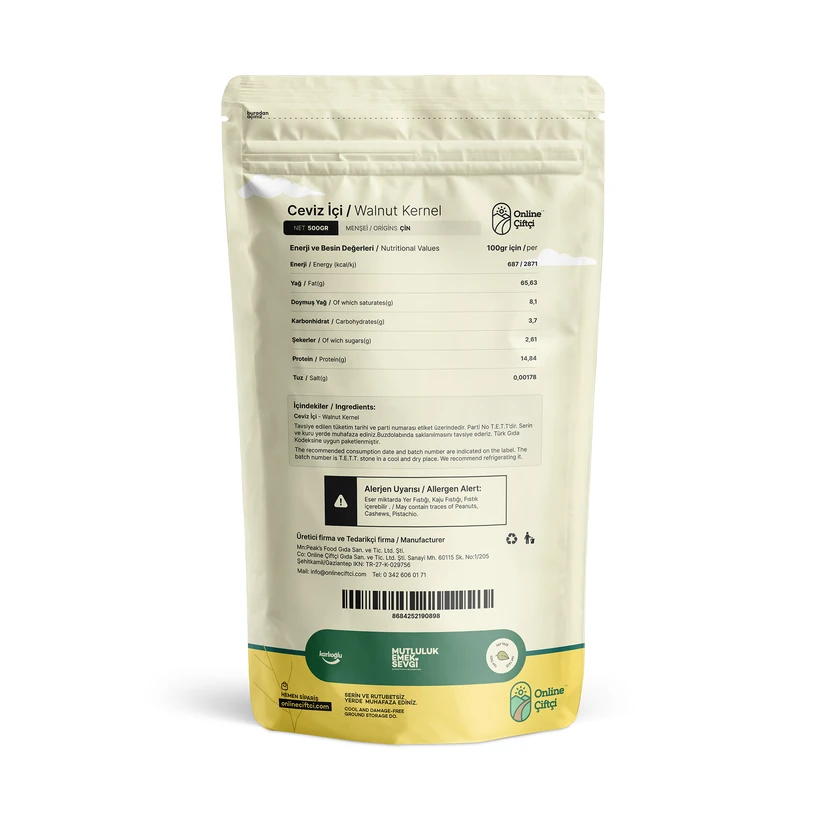 - مغز گردوی کلهبک کارلی اوغلو در بستهبندی 2×500 گرم، مغزهایی تازه و یکدست برای پختوپز، سالاد و میانوعده. بستهبندی بهداشتی و انتخاب دقیق برای حفظ طعم و بافت طبیعی.