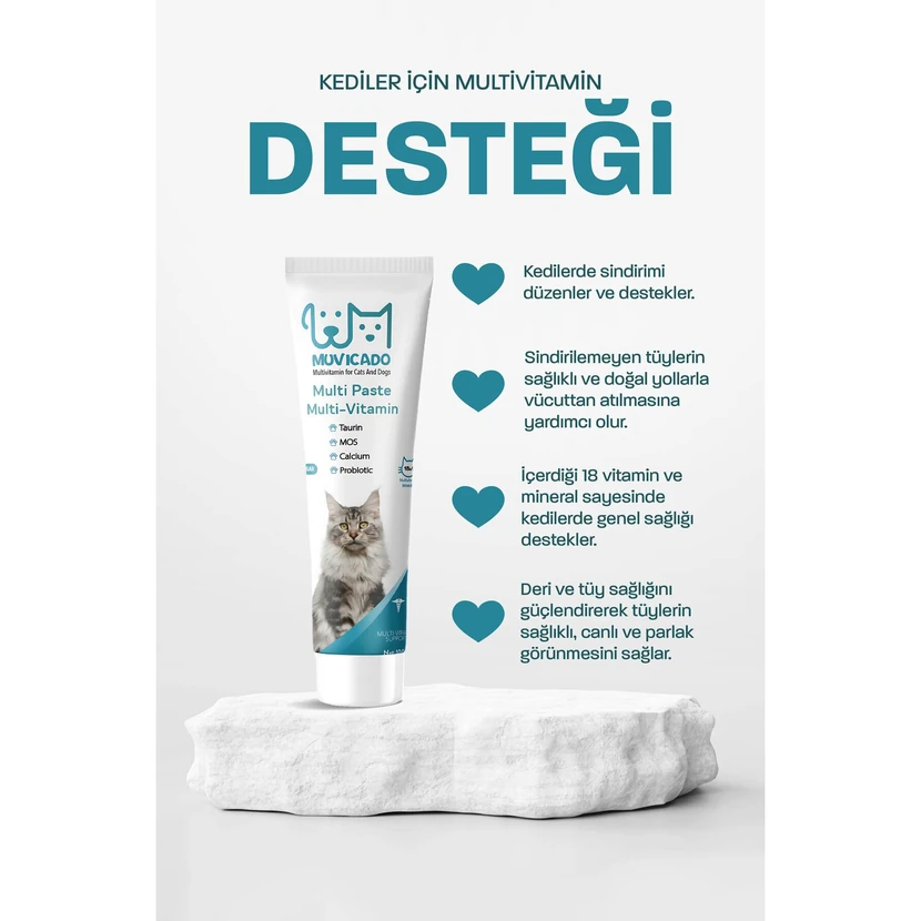 - خمیر مالت موویکادو با تائورین و بیوتین مکملی خوشخوراک برای کاهش تشکیل گلولههای مویی، تقویت پوست و مو و بهبود هضم است. مناسب استفاده روزانه، با بافت نرم و جذب سریع که سلامت گربه را پشتیبانی میکند.