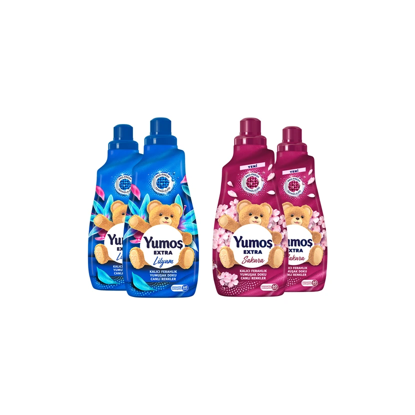 • نرم‌کننده لباس یوموش اکسترا با رایحه ساکورا و لیلیوم، بسته ۴ عددی هر کدام 1440 میلی‌لیتر. فرمولاسیون غلیظ و خوشبو که نرمی و تازگی طولانی‌مدت برای لباس‌ها فراهم می‌کند.