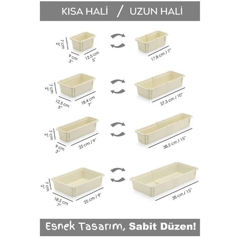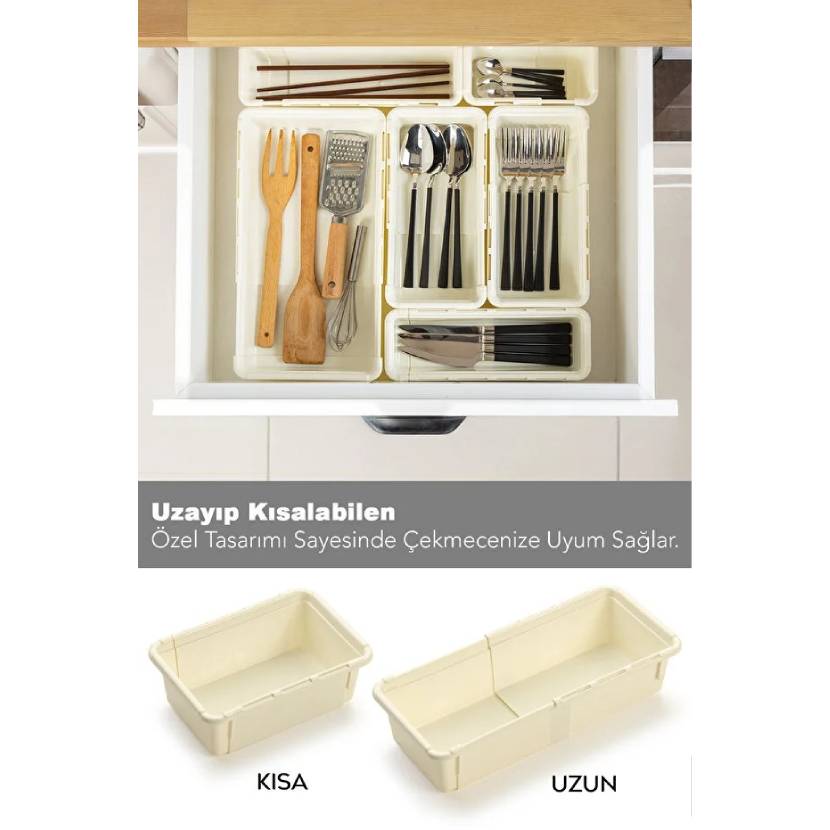Meleni Home 12'li Ayarlanabilir Kaşıklık Seti - Uzayabilen Çekmece İçi Modüler Düzenleyici Mutfak Organizer Bej