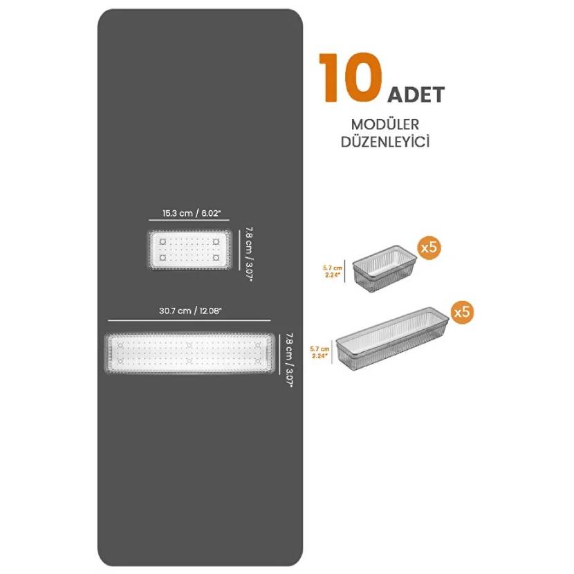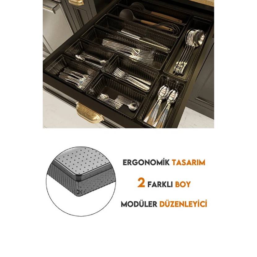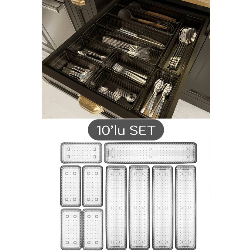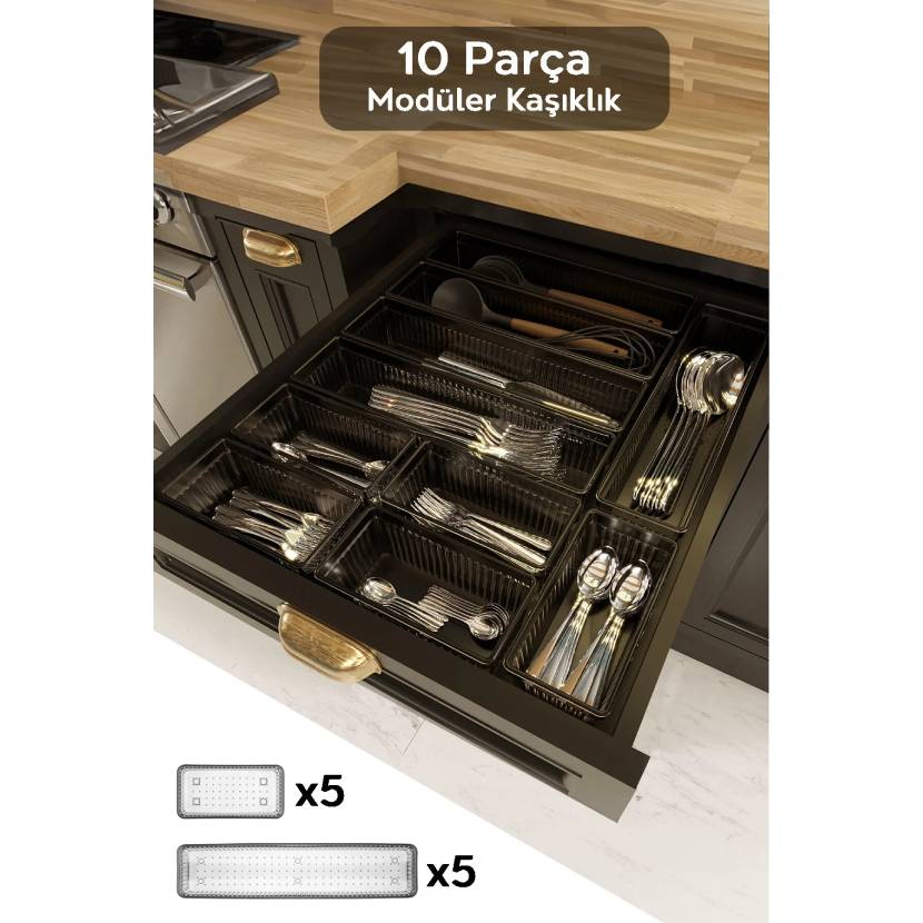 Meleni Home 10'lu Modüler Set Kaşıklık Çekmece Içi Düzenleyici Çatal Kaşık Bıçak Düzenleme Organizeri Antrasit