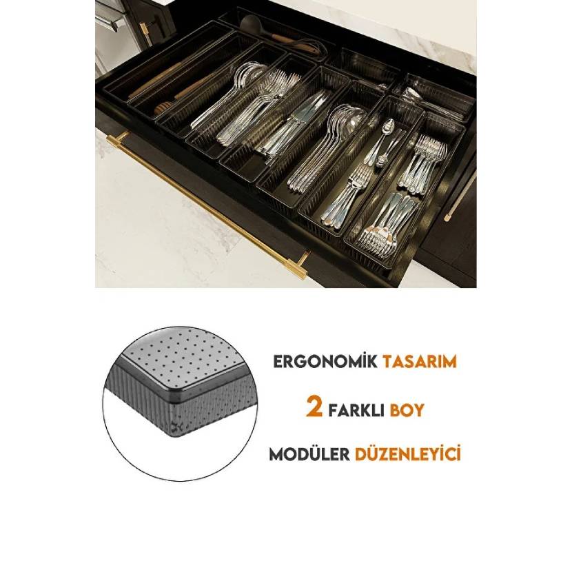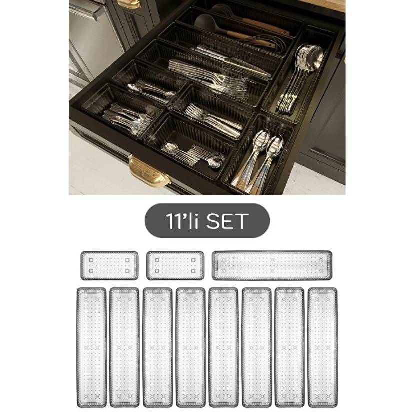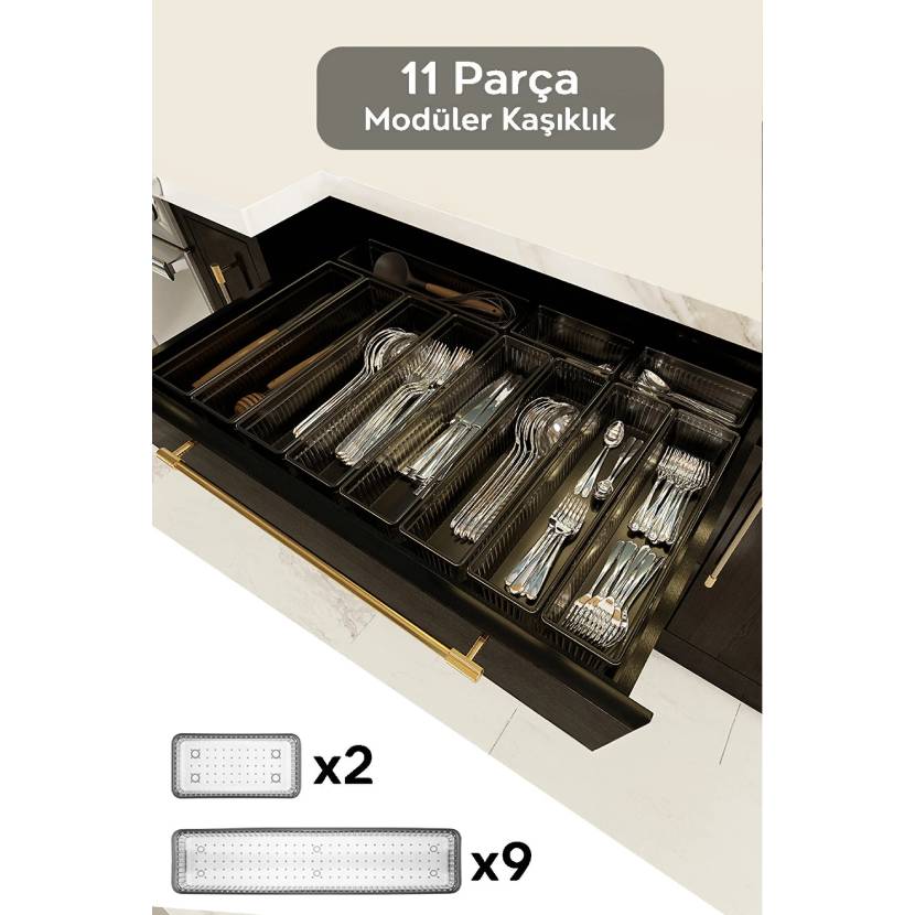 Meleni Home 11'li Modüler Set Kaşıklık Çekmece Içi Düzenleyici Çatal Kaşık Bıçak Düzenleme Organizeri Antrasit