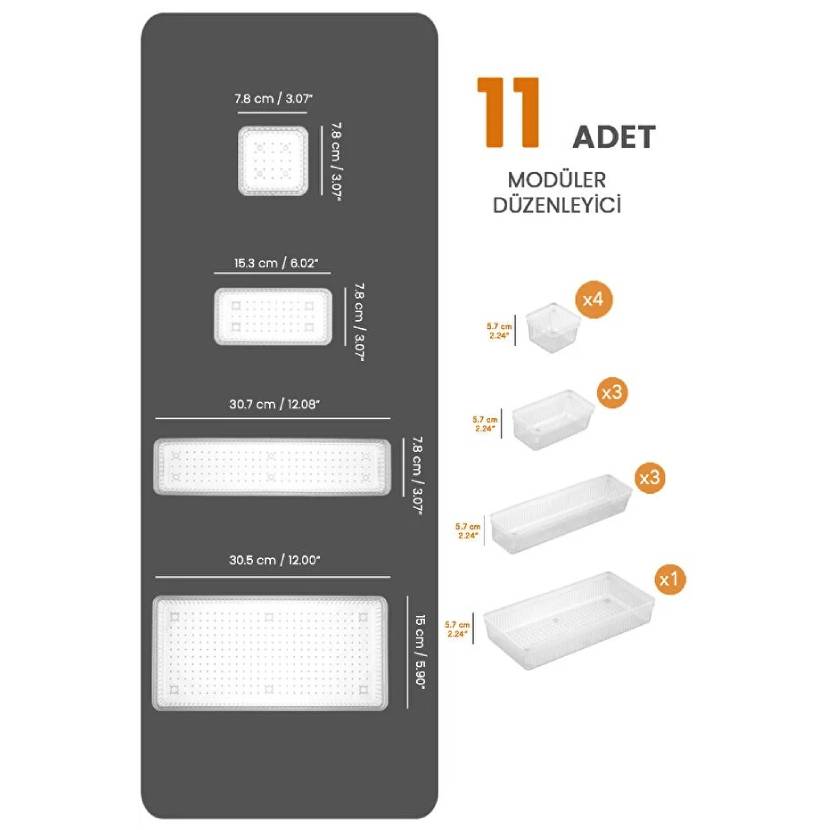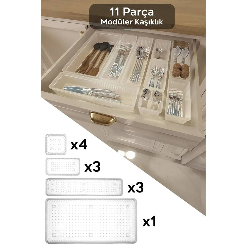 Meleni Home 11 Parça Modüler Kaşıklık Seti - Ayarlanabilir Mutfak Çekmece İçi Düzenleyici Organizer Şeffaf