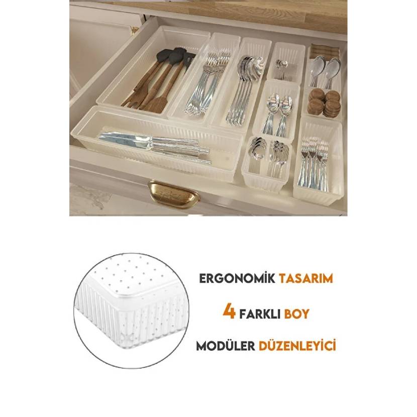 این مجموعه که بهترین دستیار شما در مرتب کردن کشوها خواهد بود، به لطف محفظههایی با اندازههای مختلف، چنگالها، قاشقها و چاقوهای شما را به طور ایدهآلی مرتب میکند.