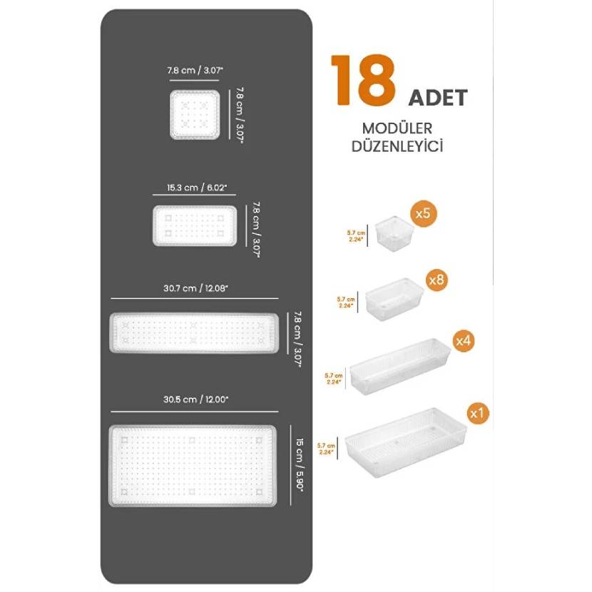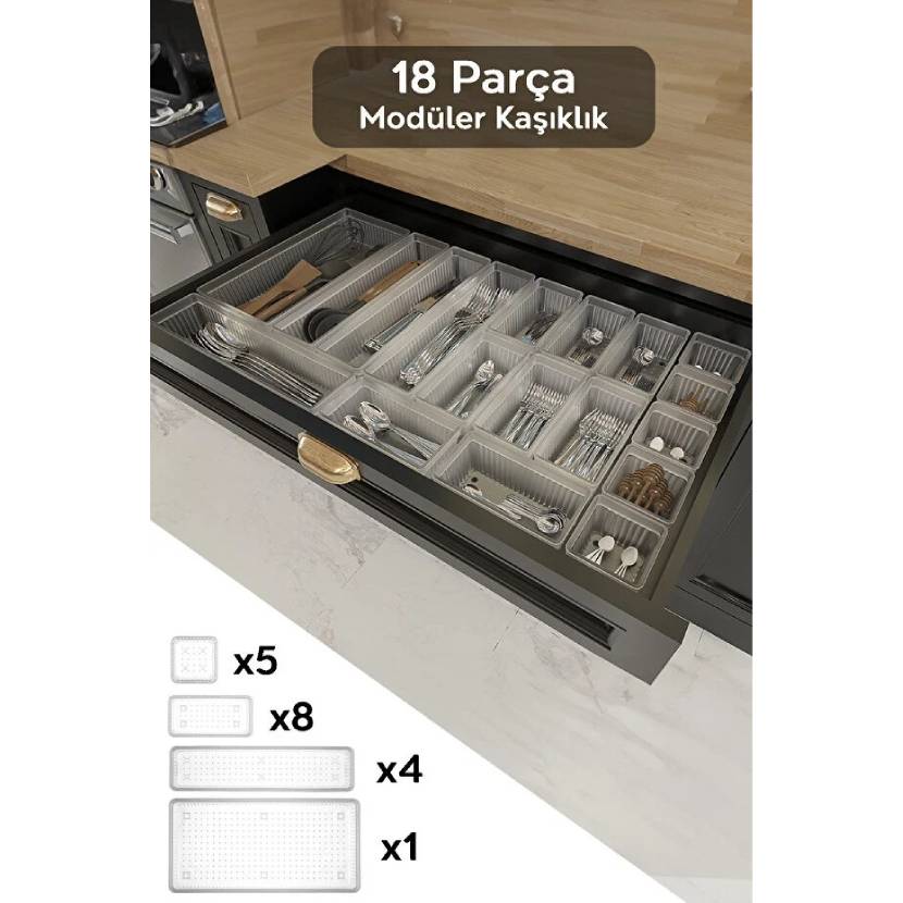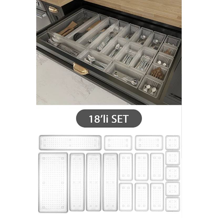 Meleni Home 18'li Modüler Set Kaşıklık Çekmece Içi Düzenleyici Çatal Kaşık Bıçak Düzenleme Organizeri Şeffaf