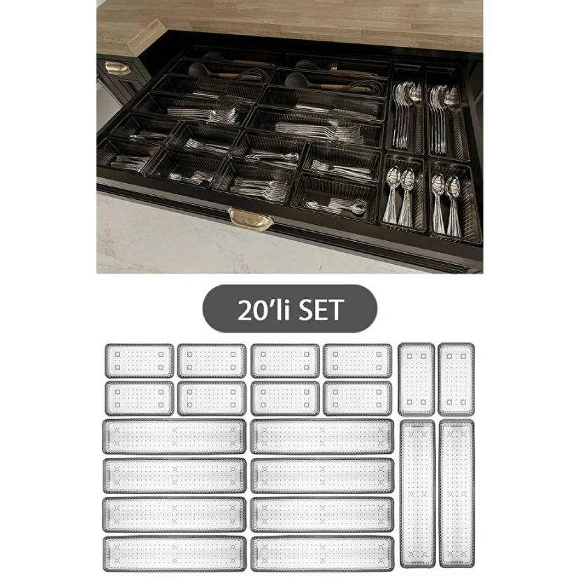 Meleni Home 20'li Modüler Set Kaşıklık Çekmece Içi Düzenleyici Çatal Kaşık Bıçak Düzenleme Organizeri Antrasit