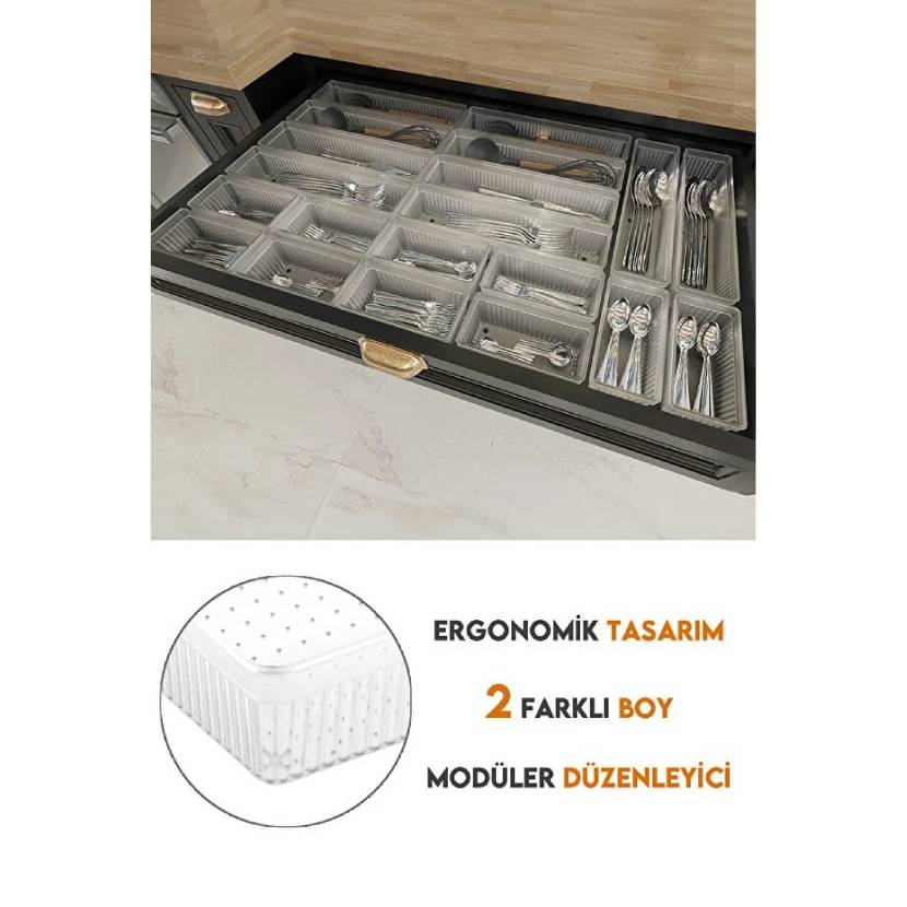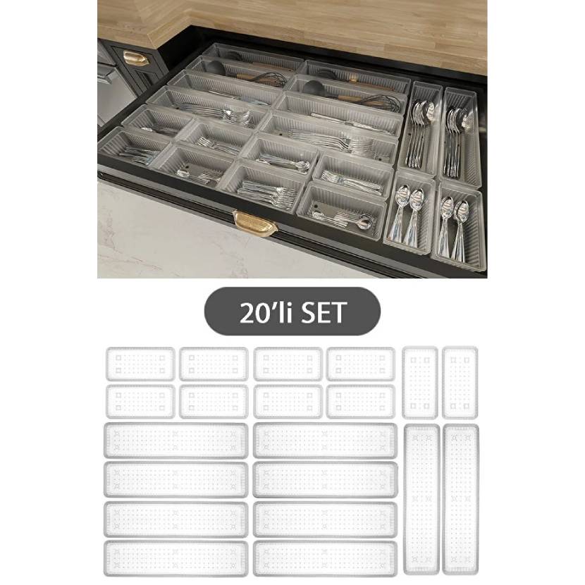 Meleni Home 20'li Modüler Set Kaşıklık Çekmece Içi Düzenleyici Çatal Kaşık Bıçak Düzenleme Organizeri Şeffaf