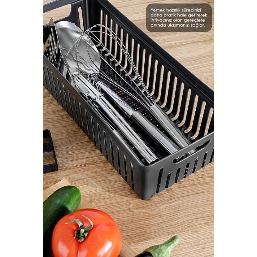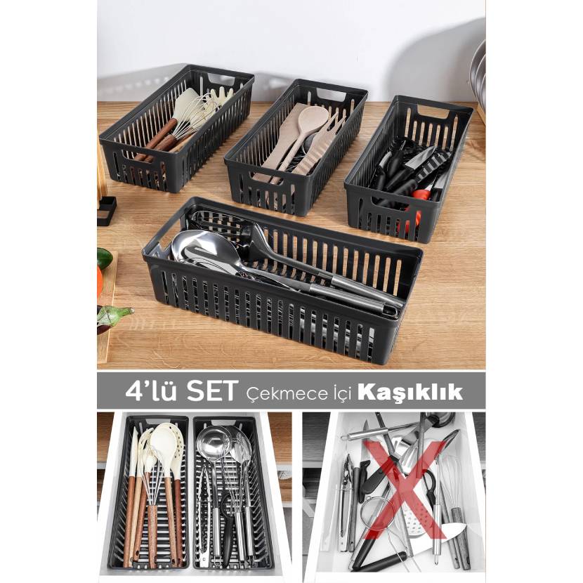 Meleni Home 4'lü Modüler Kaşıklık Seti - Mutfak Düzenleyici Çekmece İçi Organizer Bıçaklık Kepçelik Siyah