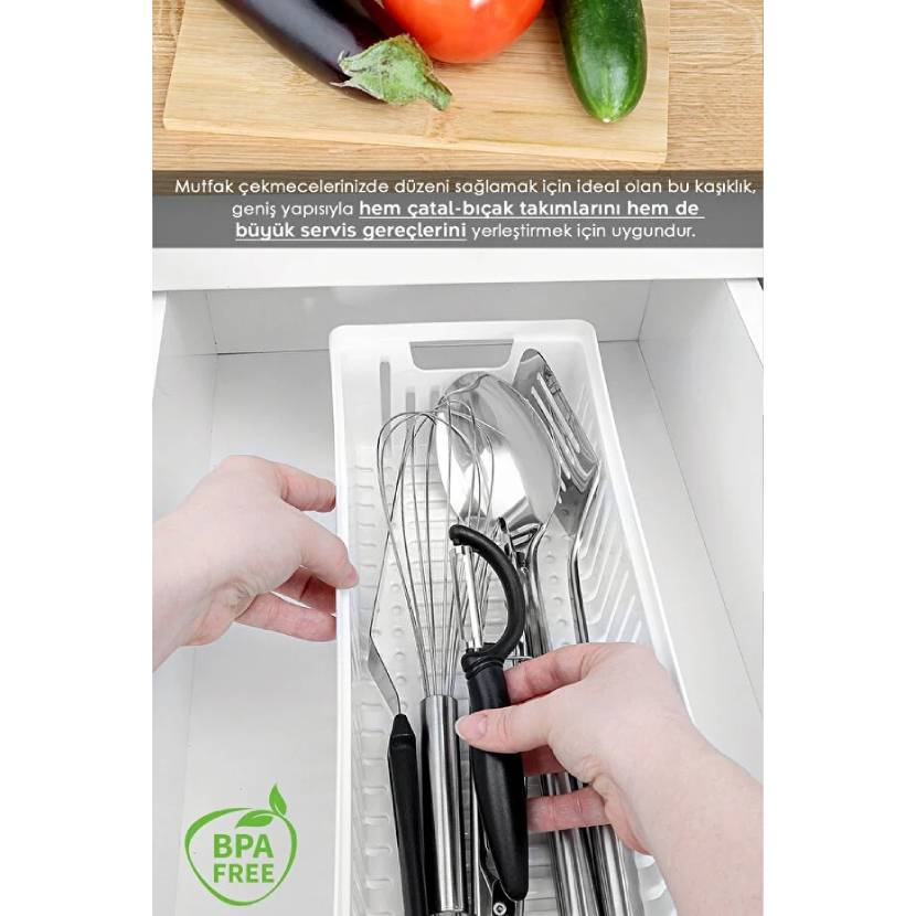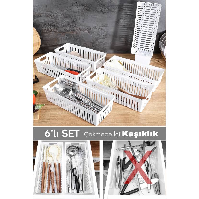 Meleni Home 6'lı Modüler Kaşıklık Seti - Mutfak Düzenleyici Çekmece İçi Organizer Bıçaklık Kepçelik Beyaz