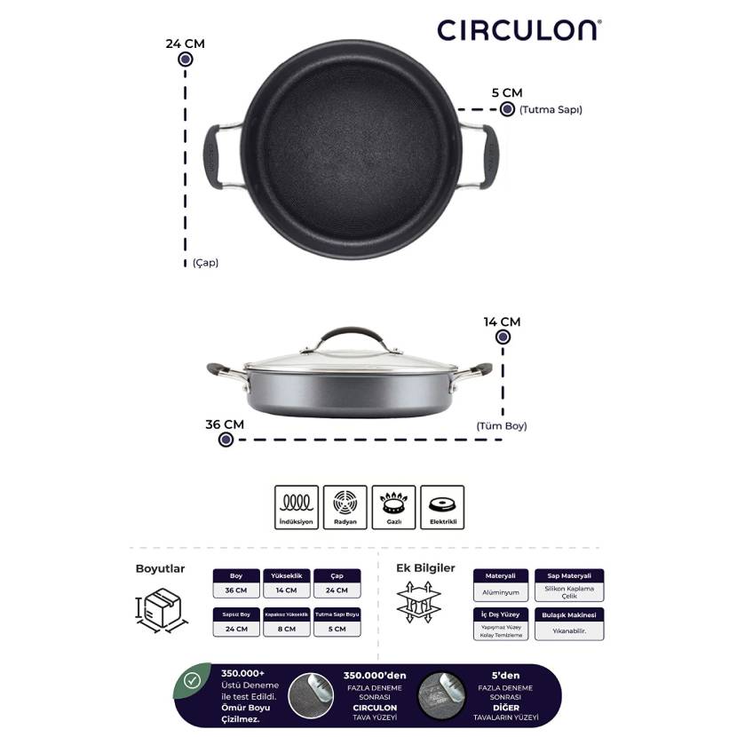 Circulon 24 CM Cam Kapaklı Sığ Tencere