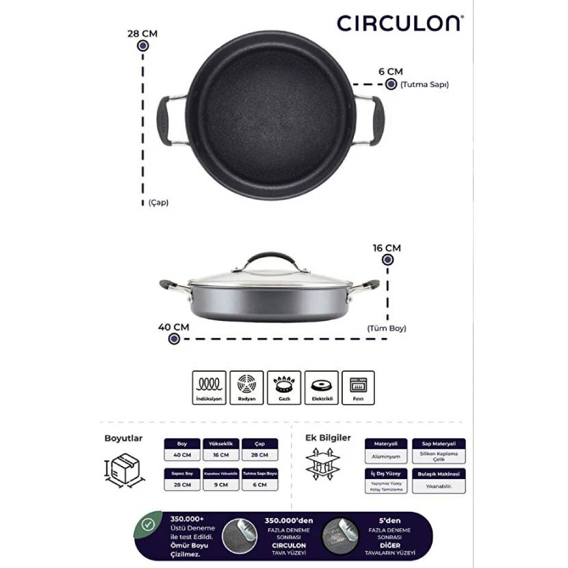 Circulon Cam Kapaklı Sığ Tencere 28 CM