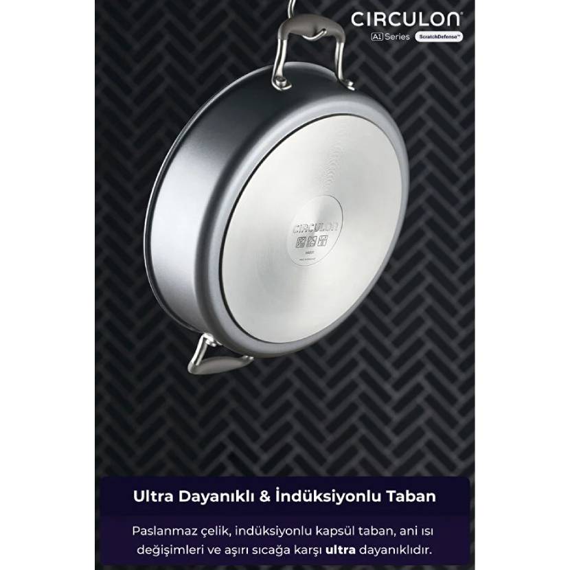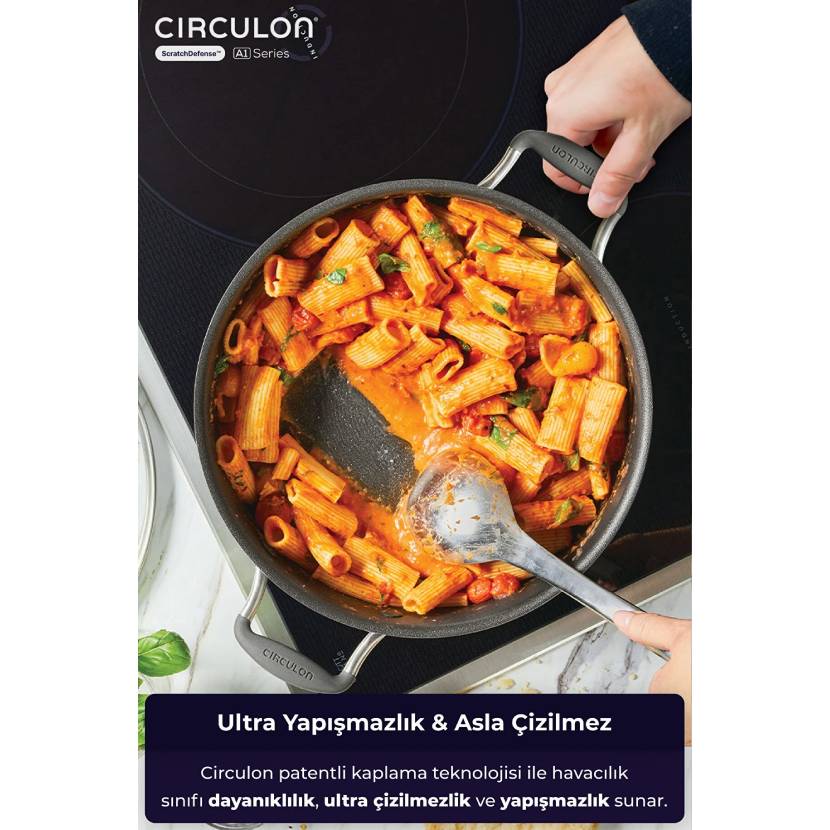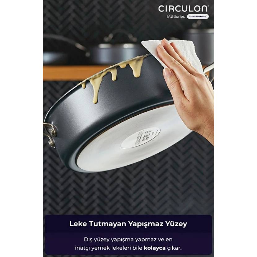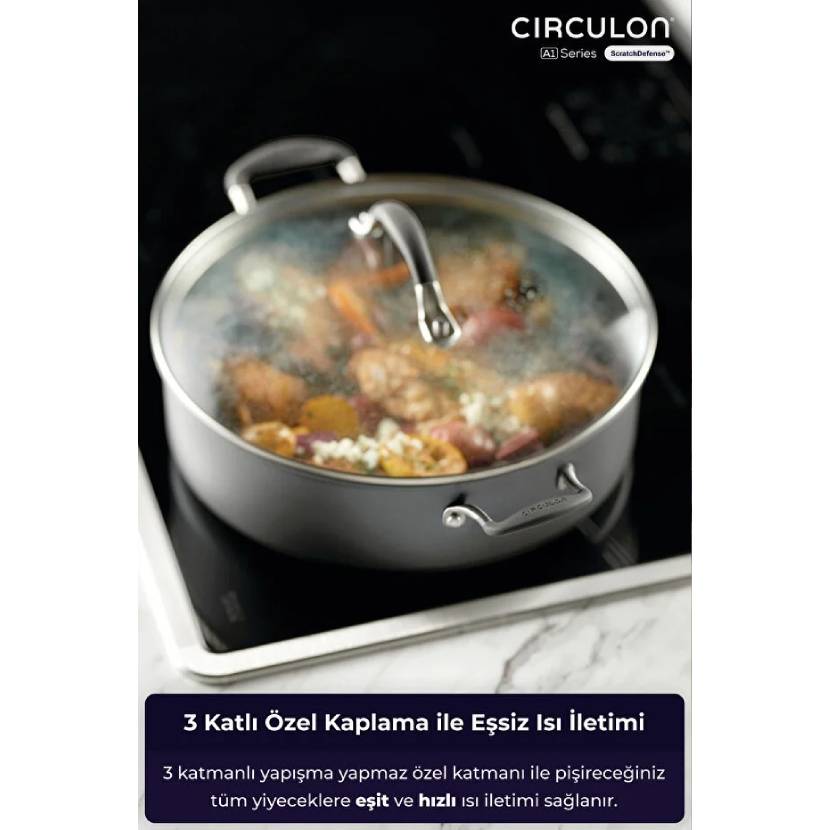 قابلمه کمعمق Circulon با درب، سایز ۲۸ سانتیمتر. Circulon، یکی از مخترعان ظروف پخت و پز ضخیم و نچسب با سه لایه، با سری A1 مجهز به فناوری ScratchDefense نوآوری را به آشپزخانه شما میآورد.
