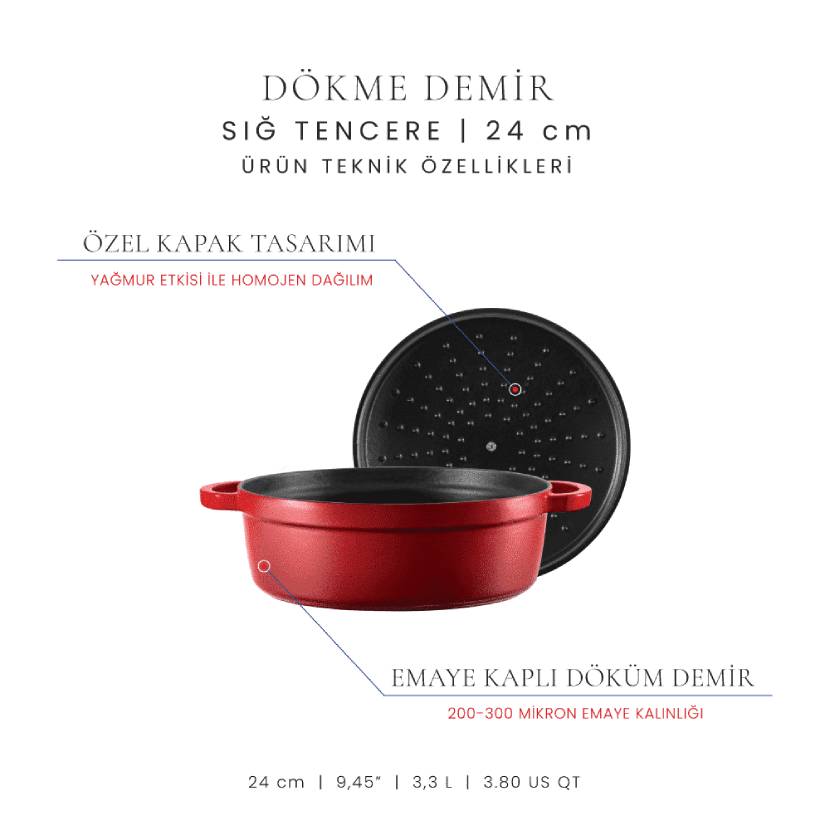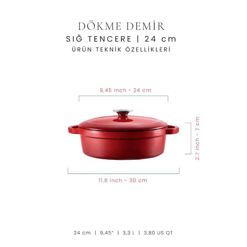 Voeux Kitchenware 24 cm Sığ Döküm Tencere