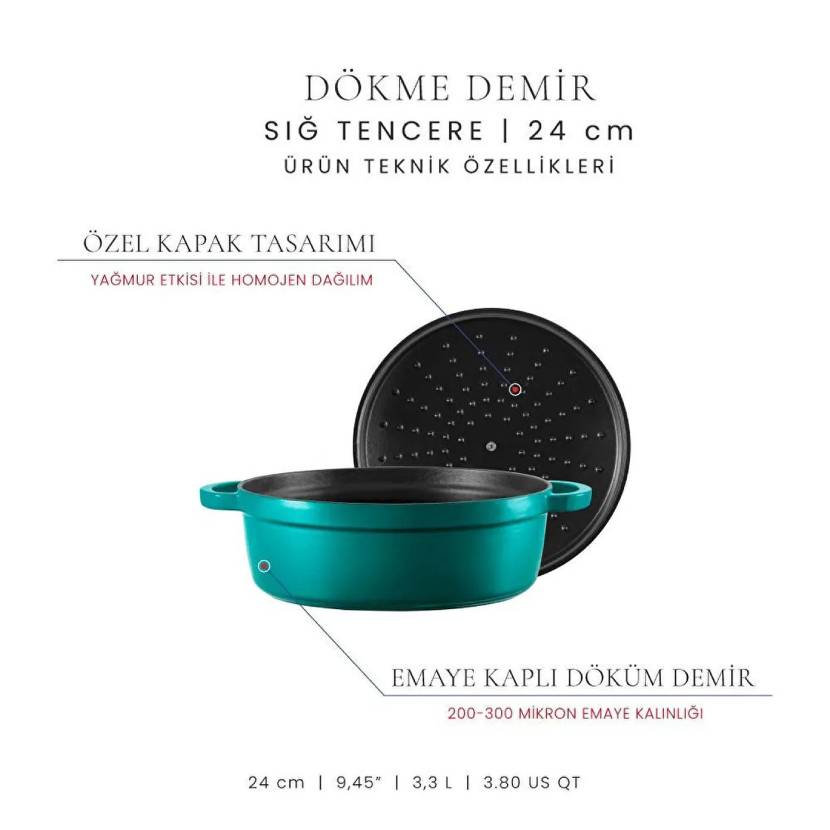 Voeux Kitchenware 24 cm Sığ Döküm Tencere
