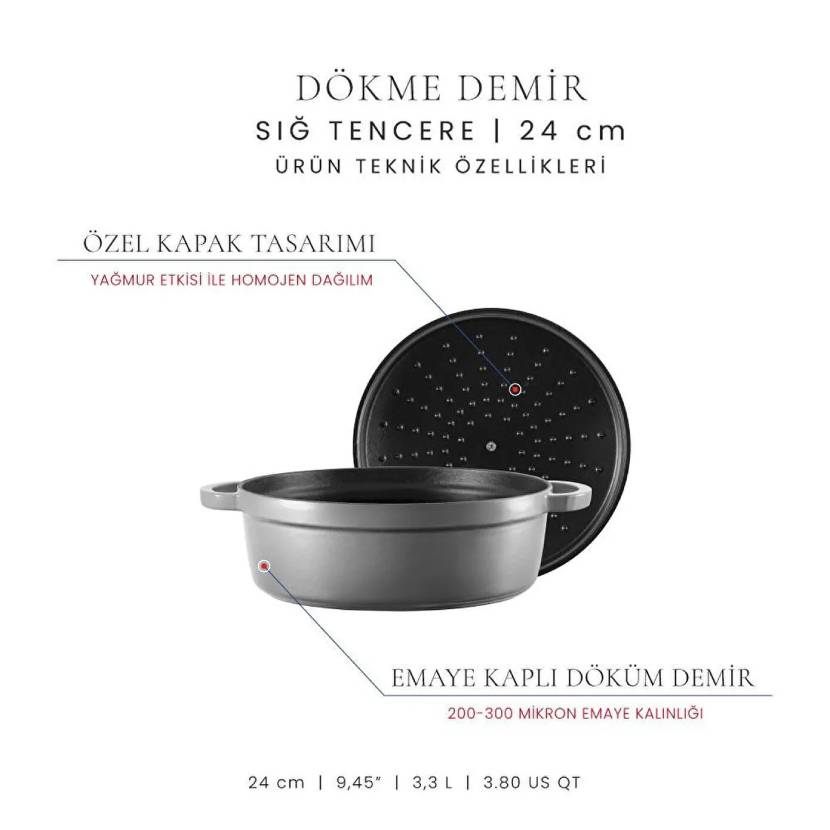 Voeux Kitchenware 24 cm Sığ Döküm Tencere