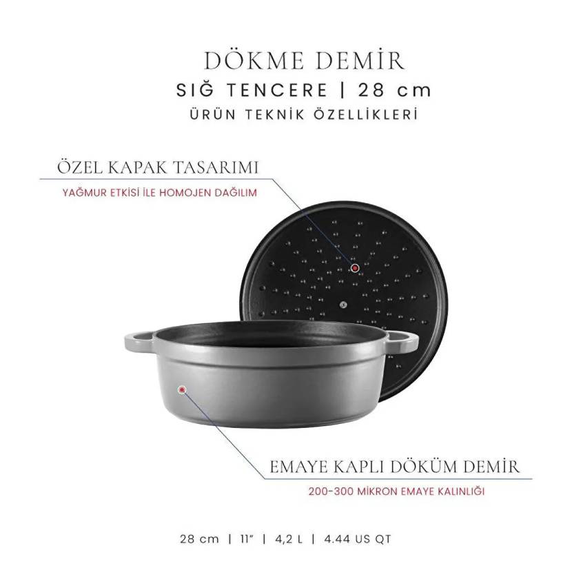 Voeux Kitchenware Voeux Gracieuse Sığ Döküm Tencere 28 Cm Gri