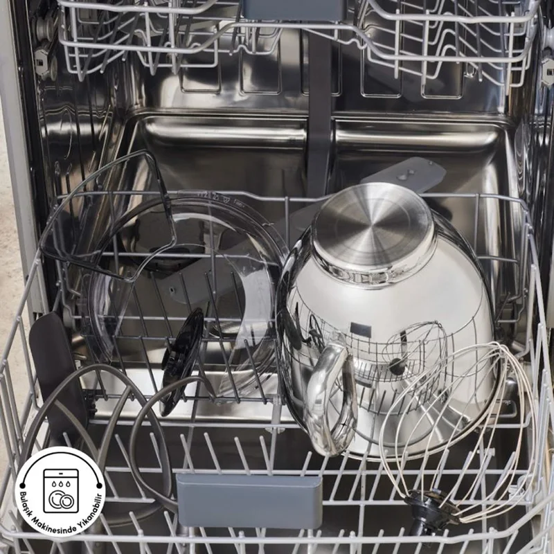 به لطف ظرف استیل ضد زنگ 7 لیتری خود، میتواند به راحتی مخلوطهای با حجم زیاد را در یک مرحله آماده کند.