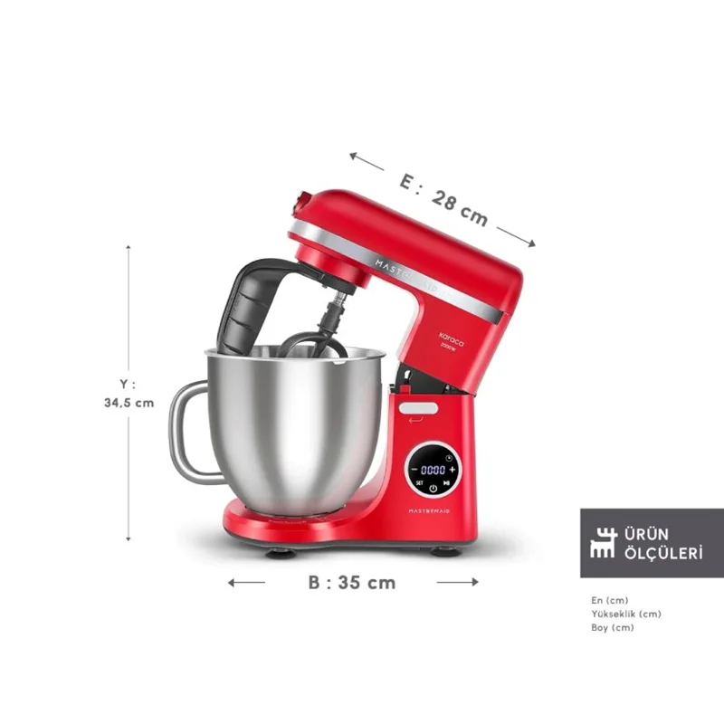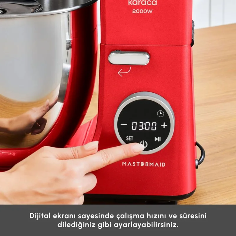 Karaca Mastermaid Chef Ultra D2000W Dijital Ekranlı Hamur Yoğurma Makinesi Imperial Red 7L