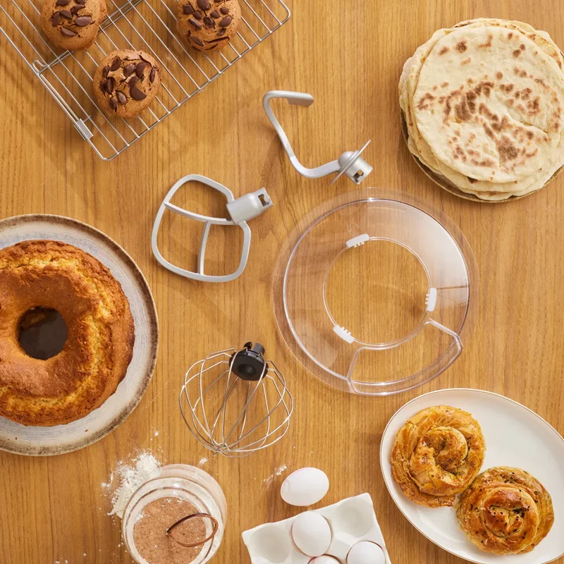 در حالی که به شما امکان می دهد مخلوط های مایع را به سرعت و به طور یکنواخت با همزن بالون مخلوط کنید، به شما امکان می دهد با همزن مسطح یا قلاب خمیر که بسته به سطح خمیر مورد نظر قابل استفاده است، به نتایج عالی برسید.