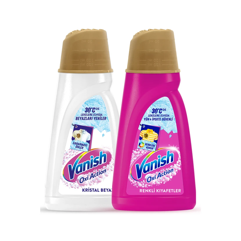 - مایع Vanish Oxi Action یک تقویتکننده دترجنت و لکهبر قوی برای لباسهای رنگی و سفید است که در بستهبندی 1000 میلیلیتری عرضه میشود و لکههای سرسخت را هدف میگیرد.