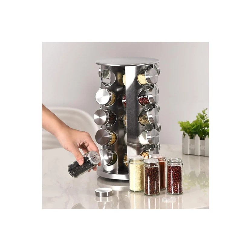 - پایه چرخان دسترسی سریع به ادویهها را ممکن میسازد و جنس شیشهای بهداشتی و نظافتپذیر است؛ نکته خرید: قبل از انتخاب ابعاد و رنگ را بررسی کنید تا با دکور آشپزخانه هماهنگ شود.