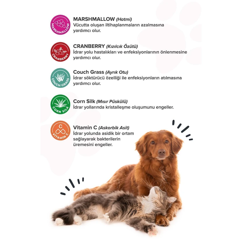 - مکمل تبلتی پاتیوگرافیا برای حمایت از سلامت دستگاه ادراری گربه و سگ طراحی شده و با ترکیبات هدفمند به حفظ تعادل مجاری ادراری کمک میکند.