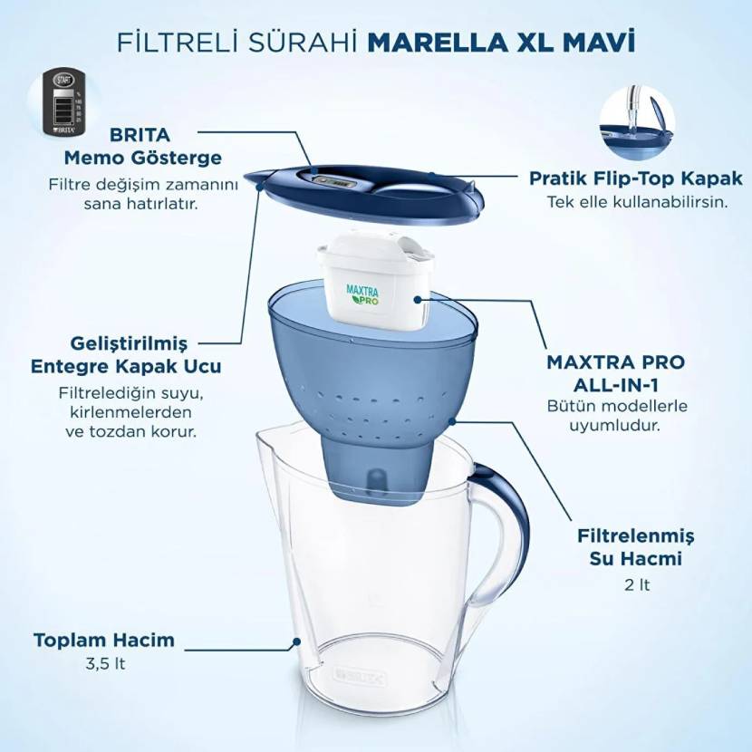 پارچه تصفیه آب Brita Marella XL، با ظرفیت 3.5 لیتری و همراه با 3 عدد فیلتر Maxtra Pro All-in-1 ارائه میشود. این مدل برای خانوادهها و افرادی که مصرف روزانه آب بالایی دارند، گزینهای بسیار مناسب است. طراحی ارگونومیک، درب آسانپر و امکان شستوشوی راحت بخشهای مختلف باعث شده این محصول یکی از پرفروشترین مدلها در میان پارچهای تصفیه آب باشد.فیلترهای Maxtra Pro All-in-1 با تکنولوژی MicroFlow، طعم آب را بهبود داده و کلر، رسوبات آهکی و ناخالصیهای رایج آب شهری را کاهش میدهند. این مجموعه انتخابی عالی برای افزایش کیفیت نوشیدن آب و مناسب برای استفاده در لیوان، قهوهساز، چایساز و پختوپز است.