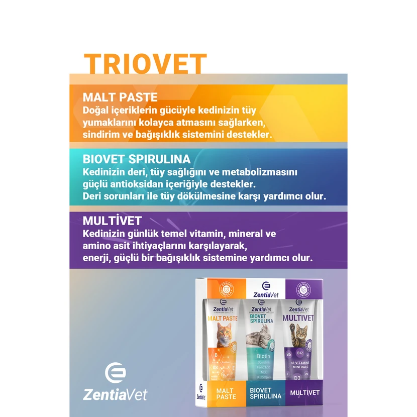 - پاستای مالت گربه زنتیاوت یک مکمل مولتیویتامین با فرمول ویژه برای کاهش ریزش مو و جلوگیری از استفراغ ناشی از بلعیدن مو است؛ کیفیت بالا، جذب آسان و مناسب استفاده روزانه برای حفظ سلامت پوست و پوشش.