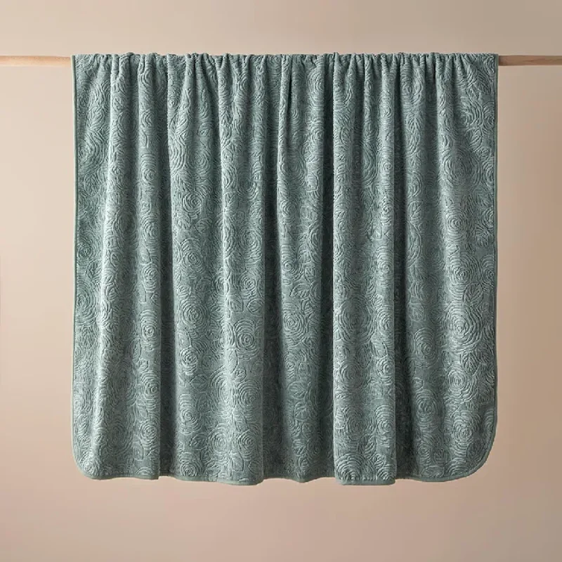 English Home Shabby Rose Emboss Çift Kişilik Battaniye 200x220 cm Seledon