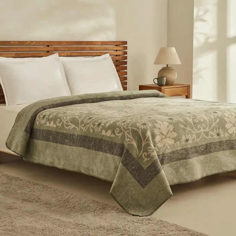 Karaca Home Flara Çift Kişilik Pamuklu Battaniye Yeşil