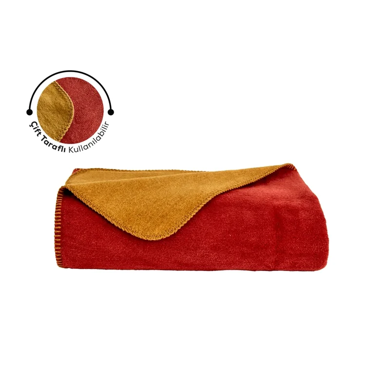 Karaca Home Saye Tek Kişilik Çift Taraflı Pamuk Battaniye Kiremit-Hardal