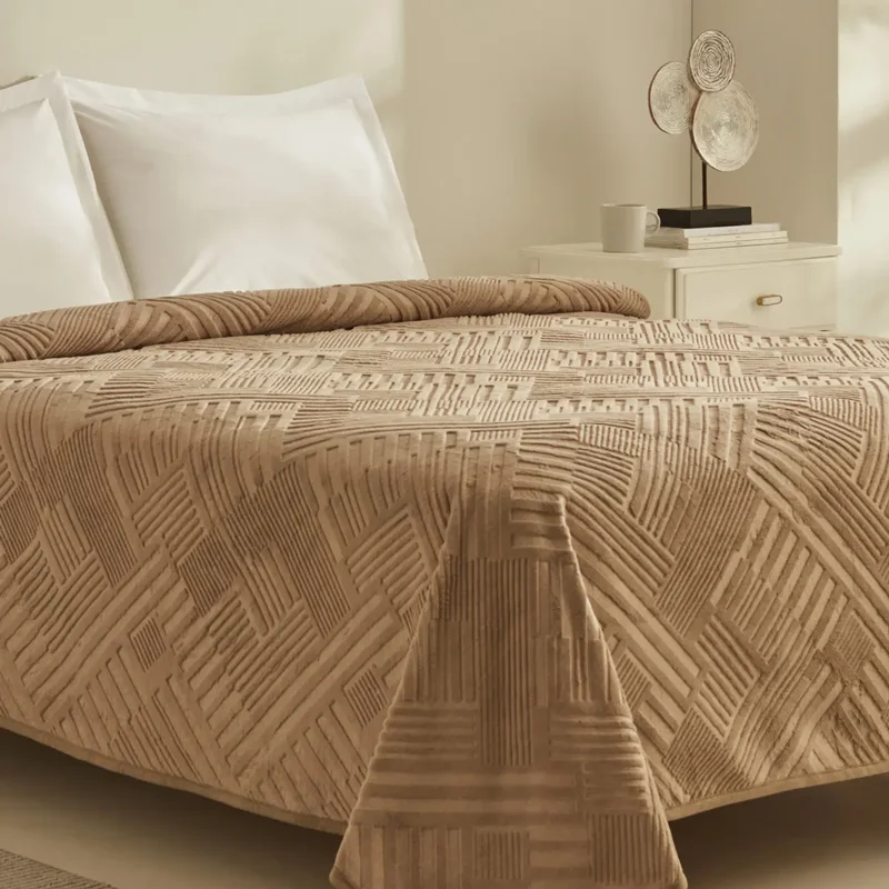 Karaca Home Rita Tek Kişilik Emboss Battaniye Açık Kahve