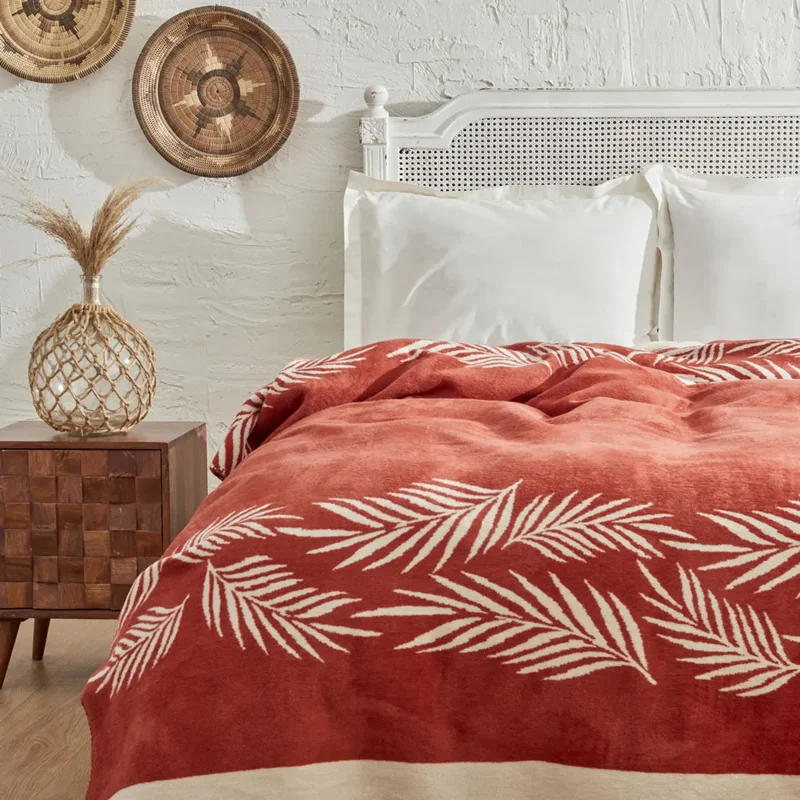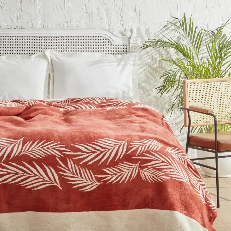 Karaca Home Leaf Tek Kişilik Pamuklu Battaniye Terracota