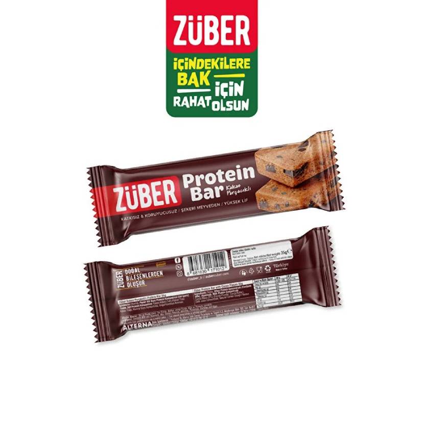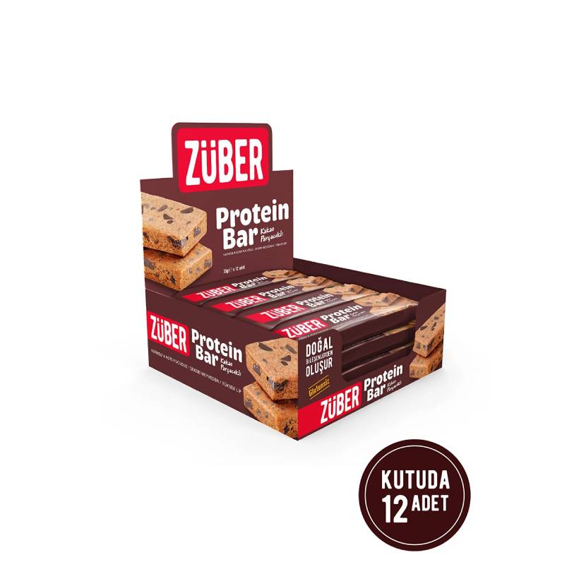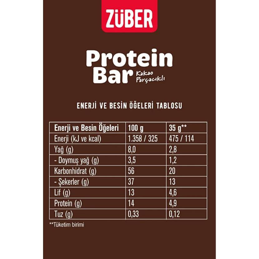 Züber Kakao Parçacıklı Protein Barı - 12 Adet x 35Gr