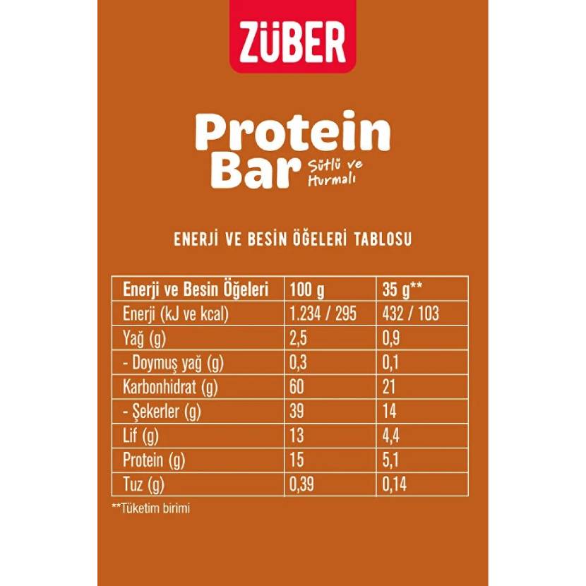 Züber Sütlü ve Hurmalı Protein Barı - 12 Adet x 35Gr