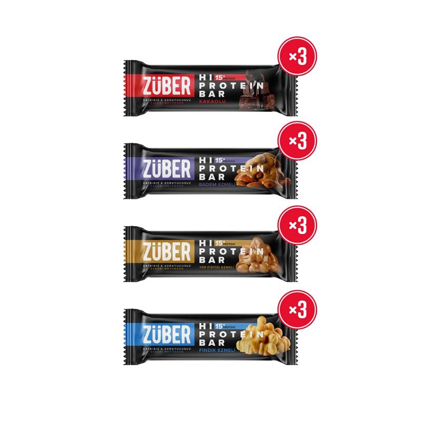 Züber Yüksek Protein Bar Deneme Paketi 45g X 12 Adet