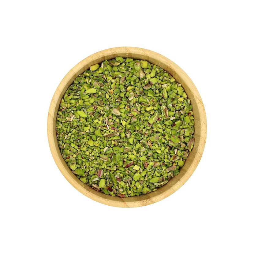 - این پسته خرد ریز برای باقلوا، کیک و شیرینیهای آجیلی، حلوا، بستنی، دسرهای سرد، معجون و حتی تزئین صبحانه بسیار کاربردی است. اندازه ریز آن باعث پوشش بهتر سطح و توزیع یکنواخت طعم و رنگ در غذا و دسر میشود.